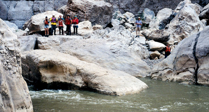 The river was big back then, and the Rockslide was a Class 4 or 5 rapid. The members of her group were trying to throw a rope across the river, about 50 feet away, and intended to drag her back. This didn’t sound like a good plan to Robin and I, so we valiantly climbed in our raft and headed over to make the rescue. We had been drinking beer all day so it made perfect sense. We paddled furiously across the roaring river. The crowd cheered as the girl climbed into our raft. One of us almost knocked her into the river with his paddle (Robin would say that was me, but I think it was him), but we made it back safely. We were heroes!