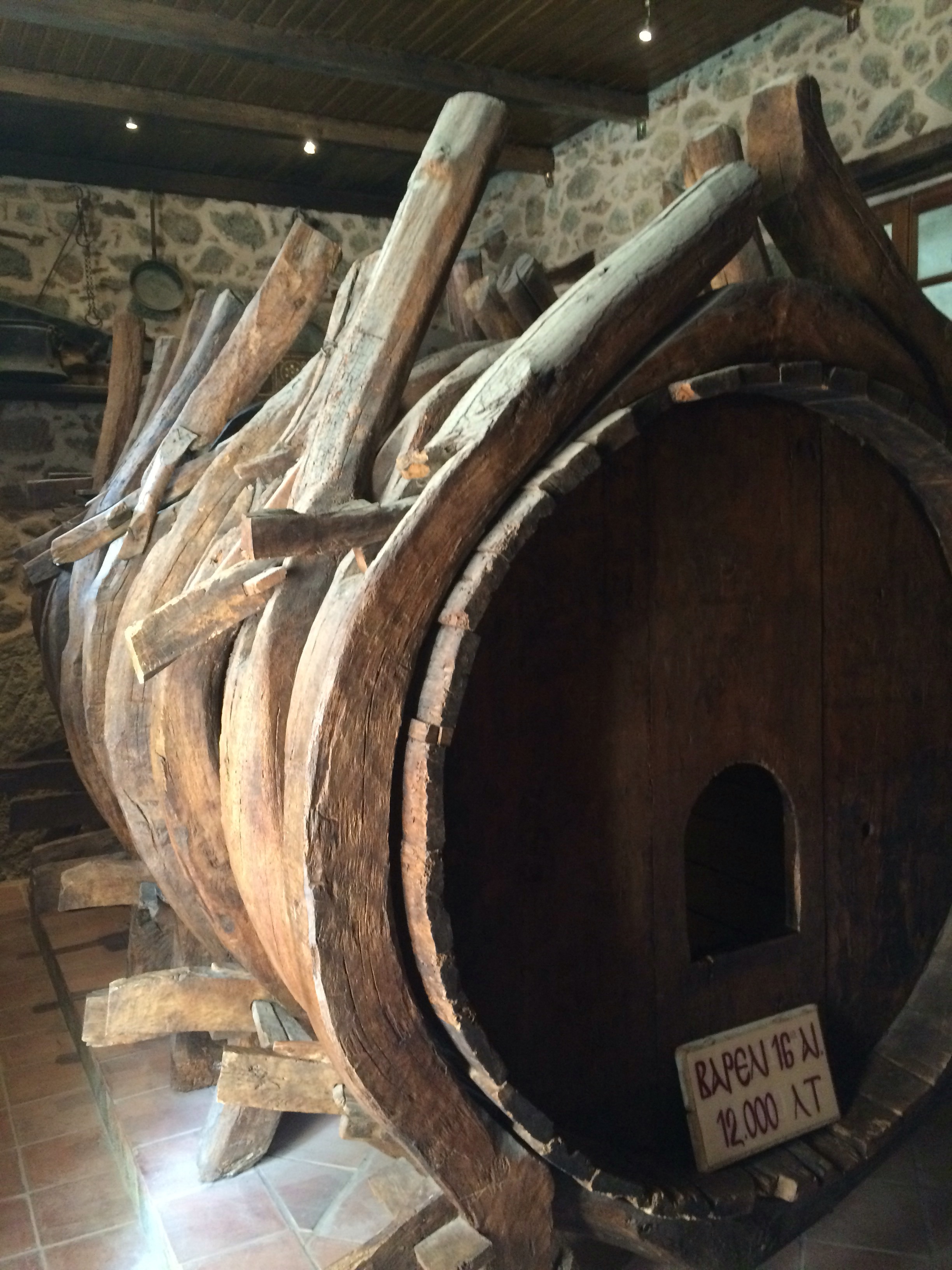 The water used to come by rainwater collection into this unusual barrel.