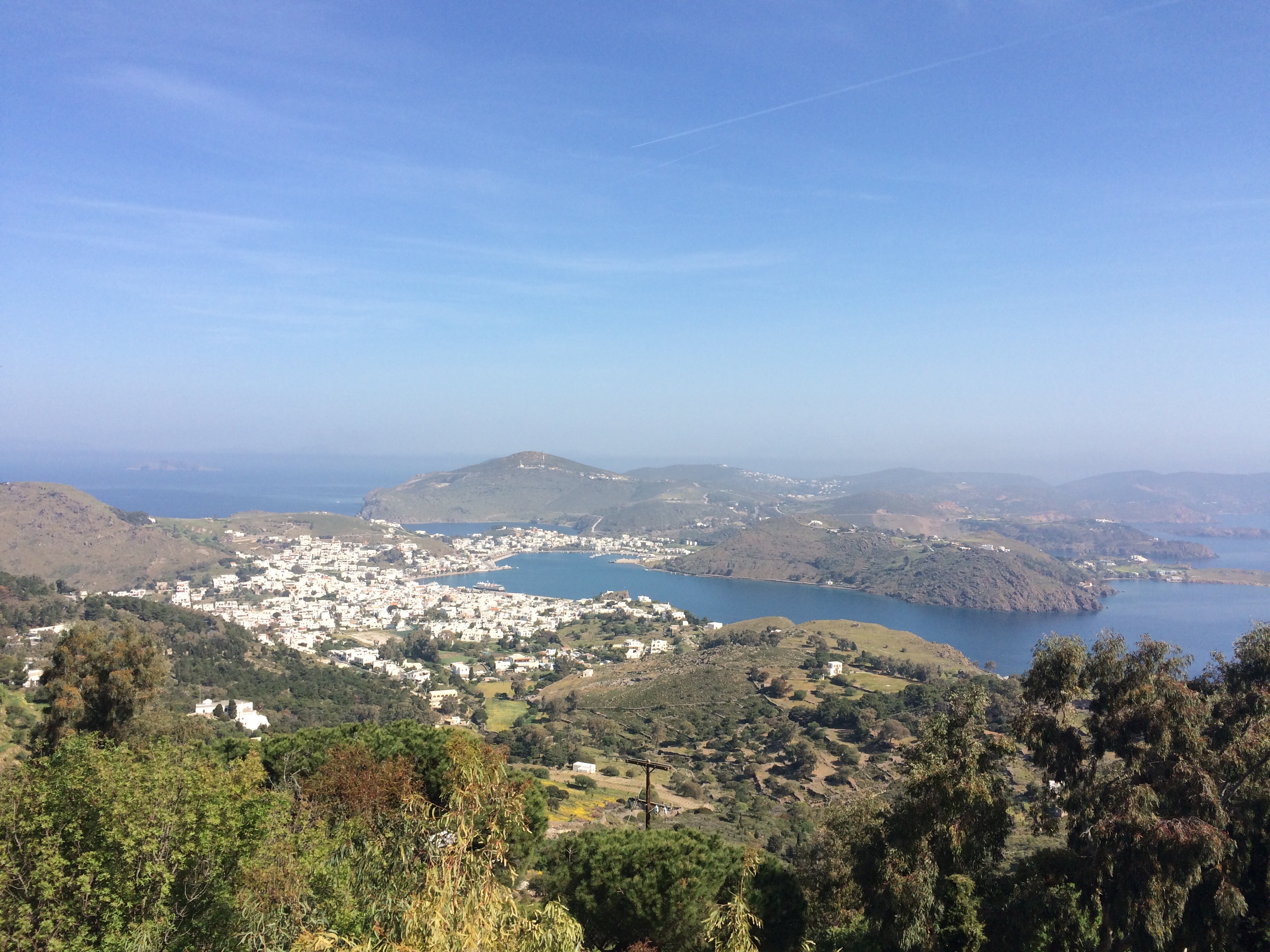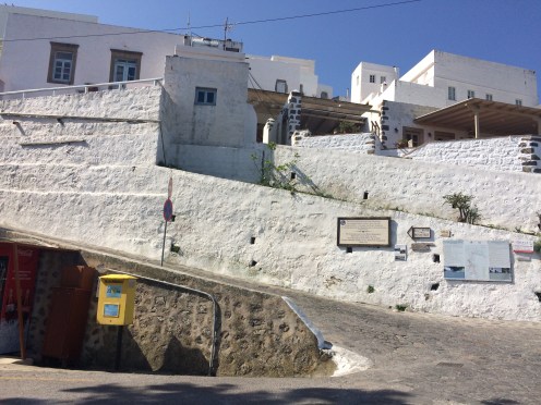I was on the Greek island of Patmos today. Tradition says the book of Revelation was written in a cave above the harbor. The cave now has a building attached and they don’t allow photographs. It belongs to a 11th century monastery at the top of the mountain. You can’t see much of it in my photo, it is on the top of the mountain.