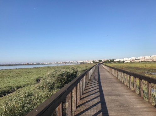 Much of the Camino was on the coast, some on these boardwalks and some on a modern paved trail through a park. Lots of locals on bicycles or walking/running. You can’t tell how tired we were when we came across this. We got to the hostel at 1:00 and were told there were 4 beds left, come back at 3:00. We frittered away the time over 4 cervecas grandes and a meal,cost us €21. We are now in our room and our friends from last night are with us. 74 year old Camino buddies Rnulfo Sloth (Denmark) and his good Camino friend 73 year old Alejandro (Bilbao) are with us!