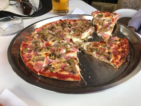 Since the ratio of suffering to beer/wine started getting out of whack when we cut mileage, we had to cut food and alcohol consumption by half!And our diet has gone to hell. Chinese food two days ago, and pizza today !1/
