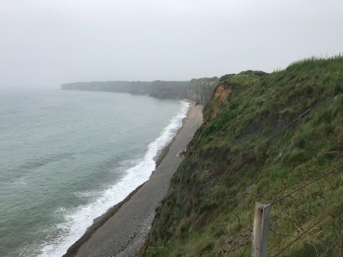 Pont du Hoc is a promontory between Utah and Omaha: this view is looking down to a beach. A soon-to-be-famous Texan led the Rangers up here to destroy the big guns.