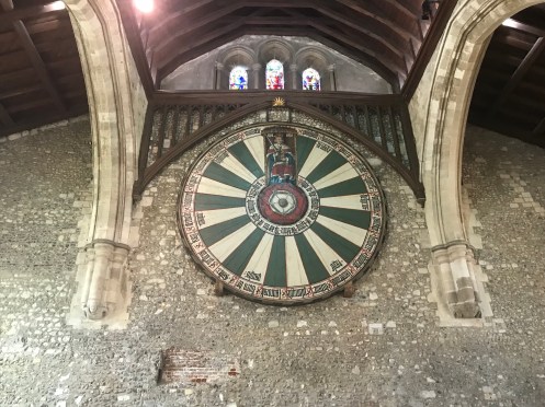 Finally, our Airbnb hosts took us for a ride in their 1934 Riley to look fo trout. We found one in the Itchen at last – a 14″ brown trout. Before we left Winchester we saw the Round Table hanging on the wall of the Great Hall; Arthur’s? Maybe, maybe not, but from the 12th century.