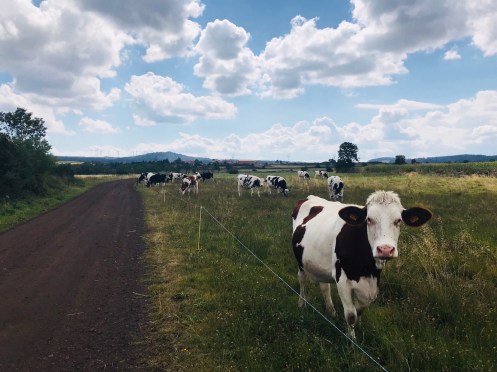 I met more cows than people on the trail today. Surface was volcanic gravel or grass. Little on roads.