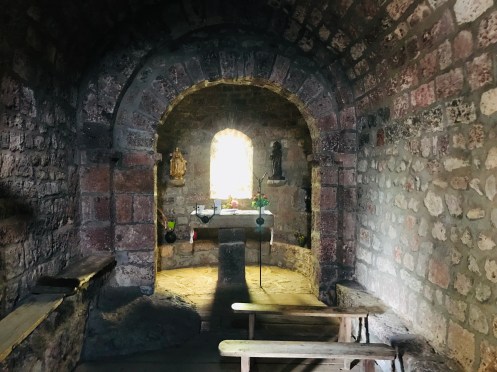 The 12th century church in Monistrol (there seems to have been a building boom that century ) depicts Jesus as the risen Christ as the gardener speaking to Mary Magdalene outside the tomb.