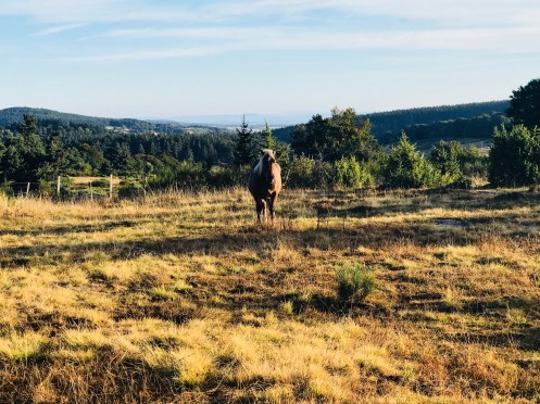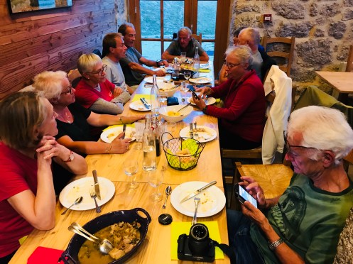 This was dinner last night at Domain du Sauvage. Soup, beef and potatoes, cheese, bread, wine, cake. And I now know all these people. Two are here at my gite tonight.