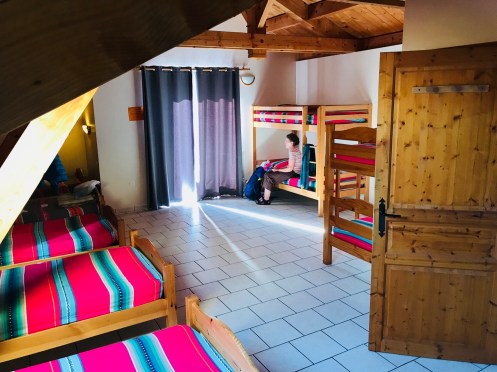 This is the sleeping room and bathroom (two shower stalls and two commode stalls). Unisex. €36 for the night and dinner/breakfast.