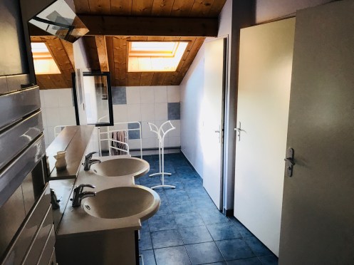 This is the sleeping room and bathroom (two shower stalls and two commode stalls). Unisex. €36 for the night and dinner/breakfast.