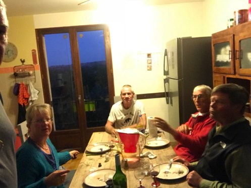 I’m staying in a house with three other guests and the host. We were called to dinner at 6:30 and are just now finishing