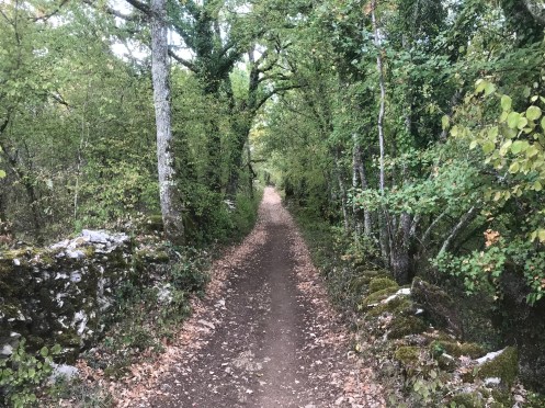 This is a typical trail- it looks to be centuries old, both containing livestock in the fields and giving a path to drive the livestock to another pasture. This may not be the original Camino path used by the Bishop of Le Puy whose pilgrimage to Santiago in 951 AD started the tradition, but the villages enroute certainly are.