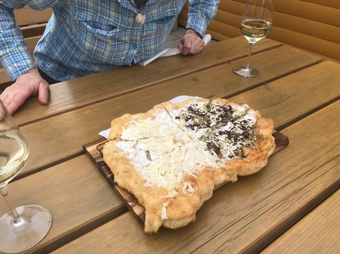 We had this traditional Slovenian fry bread for lunch with a glass of local Chardonnay. The bread is topped with garlic &butter and pumpkin oil & cheese. I got a history lesson from the cook
