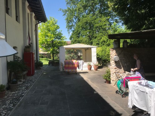 We are staying at a fabulous BnB tonight and our host is a pilot- Italian Army helicopters then civil. Very nice space, very nice couple. No hostels around here, but it is still only about €20 each. This is the washing area.