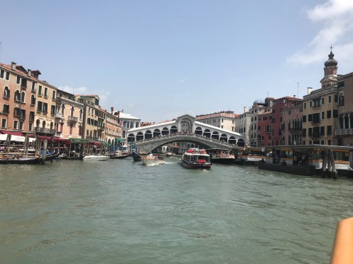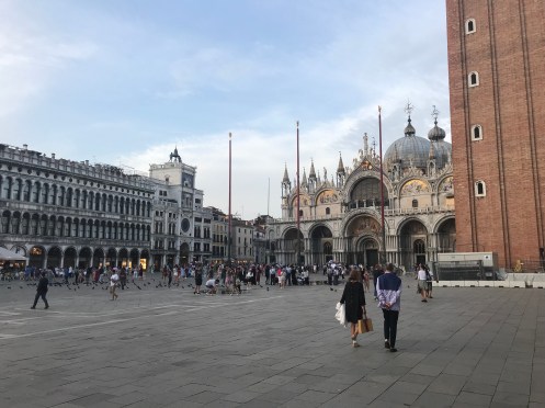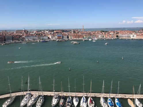 Venice is and has been falling apart. The food and wine in our price range was average at best, but decay makes more interesting photos! St Mark’s Square is amazing, made more so by the three ensembles playing music. They were great but seating nearby is reserved for restaurant patrons with higher budgets. The view from the tower was probably worth the price of admission. We were up top for a bit of very loud bell ringing. We spent a lot of time on these boats. Our guide, Tyler, has made many trips here. Michelle and I just followed.