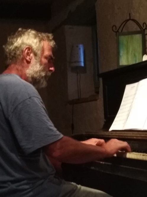 We had planned an extra night in Cahors because Anne-Marie had heard of a concert she wanted to attend. When we went to the tourist office we found that the concert wasn’t until the following weekend. We picked Gite Ferme Trigodena from the app and made reservations. That night after dinner our host, Remy, a farmer and farrier, sat down at his old piano and played a marvelous concert.