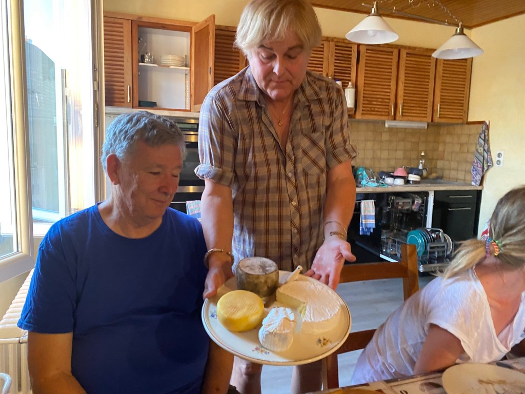 Dinners often start with an apertif of cognac or homemade brandy, followed by an appetizer, main course, cheese plate, dessert, and then another shot of brandy. There is wine and food on the table. Sometimes the first bottle of wine is a local delight, but after that it is box wine. However, its France, so the box wine is good. Dinner takes 2 to 3 hours and often the host eats with the pellerin (pilgrims). The conversation is all in French, so if you don’t speak it, try to sit next to someone who speaks both French and English. French Canadians are the best for this! Often the talk is about the trail; what was today like, what to expect tomorrow, what is the weather forecast. Sometimes it is local history, and sometimes you can find out some things about the host. You will get to know most or all of the pilgrims each day. Gites are typically open May through October, 7 nights a week, with a new group of pilgrims every day. Sometimes they have housekeeping and cooking help, but often it is a one person show. Hosts tend to know the other hosts in the area and can recommend the best ones if you ask. The food is usually extraordinary. The beds usually have a bottom sheet and a blanket only, towels are not provided. There are not as many bunkbeds in France as in Spain and Portugal.