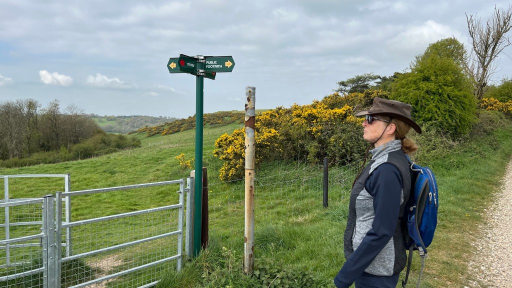Then I successfully took the train to Andover, where I met up with Ann Marie and her husband Simon. We did some walking today on a public footpath in the hills.
