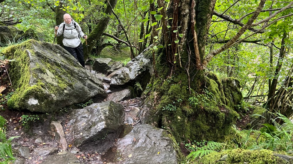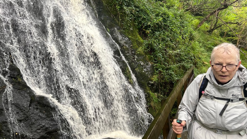 We walked Inversnaid to Invernnen in the rain today, 7 hours total. Where we walked yesterday was not passable because the creeks (Byrnes) were up too high.