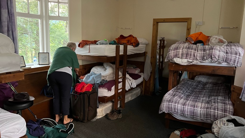 The bunkhouse will be full tonight. The only restaurant in the tiny community of Bridge of Orchy, in the hotel, was full with two tour groups and couldn’t offer us any dinner. I was able to rehydrate with a couple of pints of local beer. We had a couple of “add hot water and stir” meals. It was fine.
