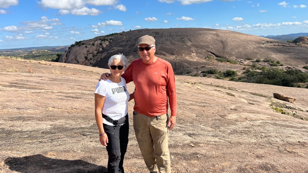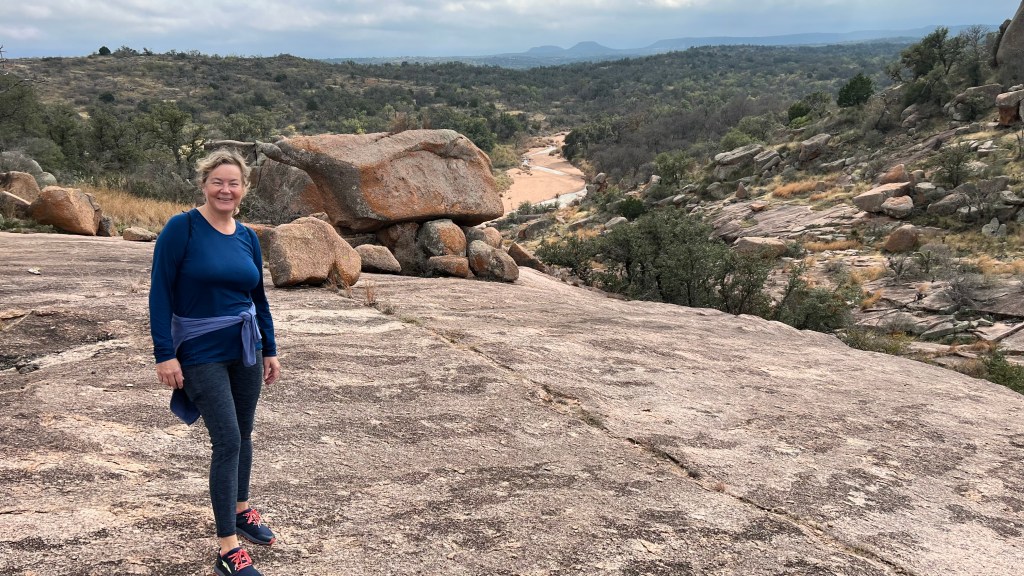 Enchanted Rock is 17 miles north of Fredericksburg. This photo is from Little Rock with Enchanted Rock in the background. I met this cute Belgian girl 4 years ago in France. We walked trails together in France and Italy in 2018, 2019, 2021, and 2022. This October we visited the Grand Canyon and other amazing parts of the American West in October. Her name is Josette, and we communicate in French.