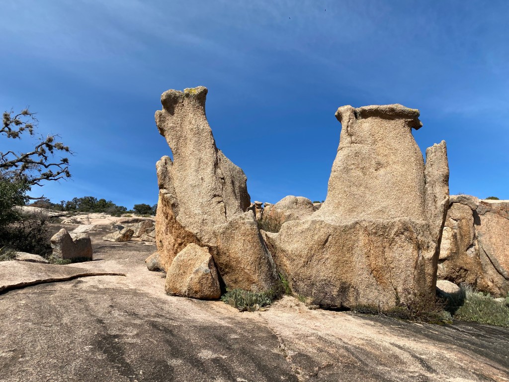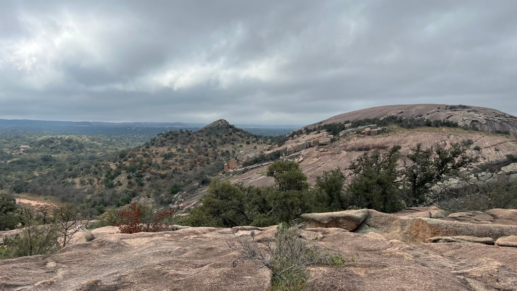 People often ask me how I prepare for the trail. The short answer is, I don’t. If you don’t prepare for a long walk, you suffer, but only for the first week. My walks in Europe are generally 4-6 weeks long. However, I walk here twice a week to stay in shape. On this post I’m going to show you photos from what I call The Seven Summits: the seven high points in Enchanted Rock State Natural Area (ERSNA). The Summits in this post aren’t in order, and I usually hike only two or three on a visit. The Seven Summits all together are a hard walk which I’ve only done three times.