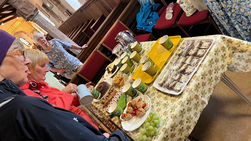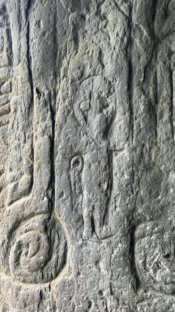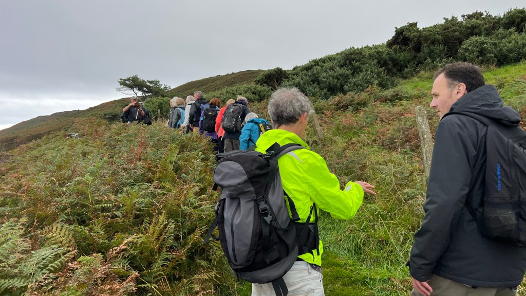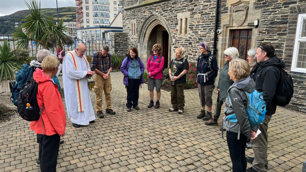 We wrapped up the four day, 37 mile pilgrimage across the Isle of Man today. It rained again today, although the rain was never heavy. We walked along the coast and then over a big hill into village of Maughold. This is where the Saint arrived and ran a mission in about 450 A.D.. He lived here 60 years. we had a presentation by the pastor of the church of England on the site, learned about Sainte Maughold and his legacy here.