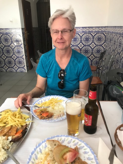 We had a great lunch downstairs in the hotel – not a tourist place, it looked like locals. I had baked goat and Kay baked cod, €21 including 2 Sagres beers each. Outgoing and friendly waitstaff who are keen to speak English and quite professional.