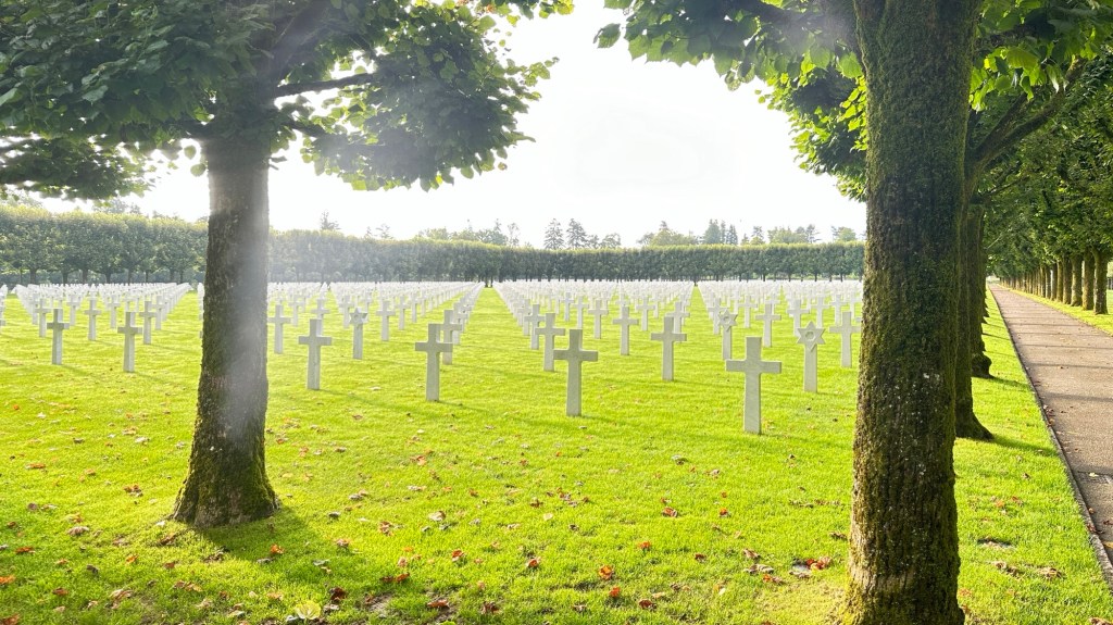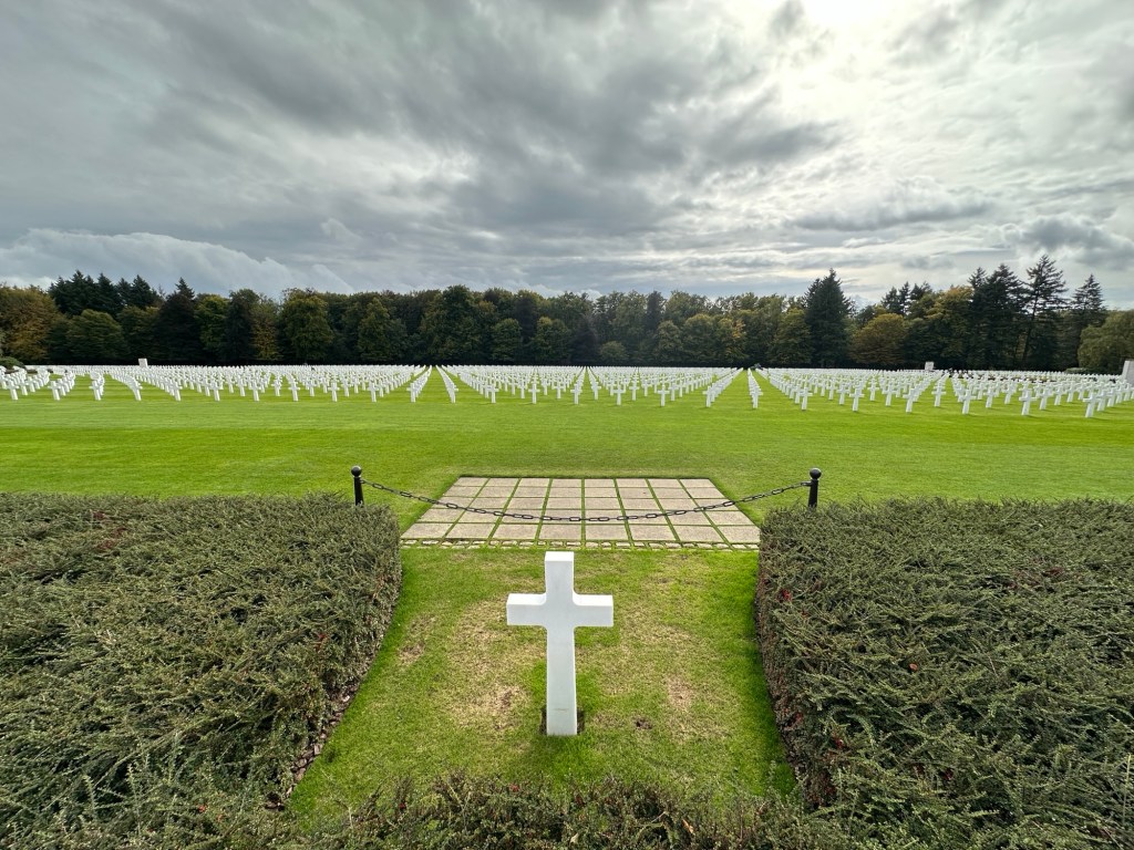 Nearby are the graves of 10,319 German soldiers in the Sandweiler German Cemetery