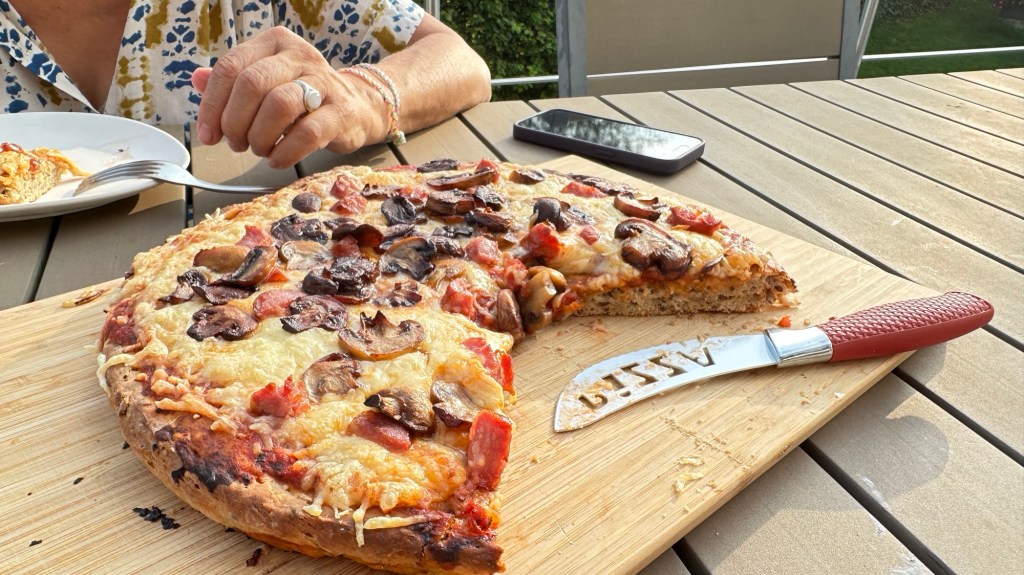We have been camping until last night, 13 nights in all, until last night. But the weather has been fantastic and it was easy to find campsites. Google “campsites near me” isn’t always helpful, unless you’re looking for a campground in California. Many don’t take our setup, etc, etc. last night we opted for Booking.com. I had fish and chips and Josette had lasagna, both judged perfect. Now it’s raining.