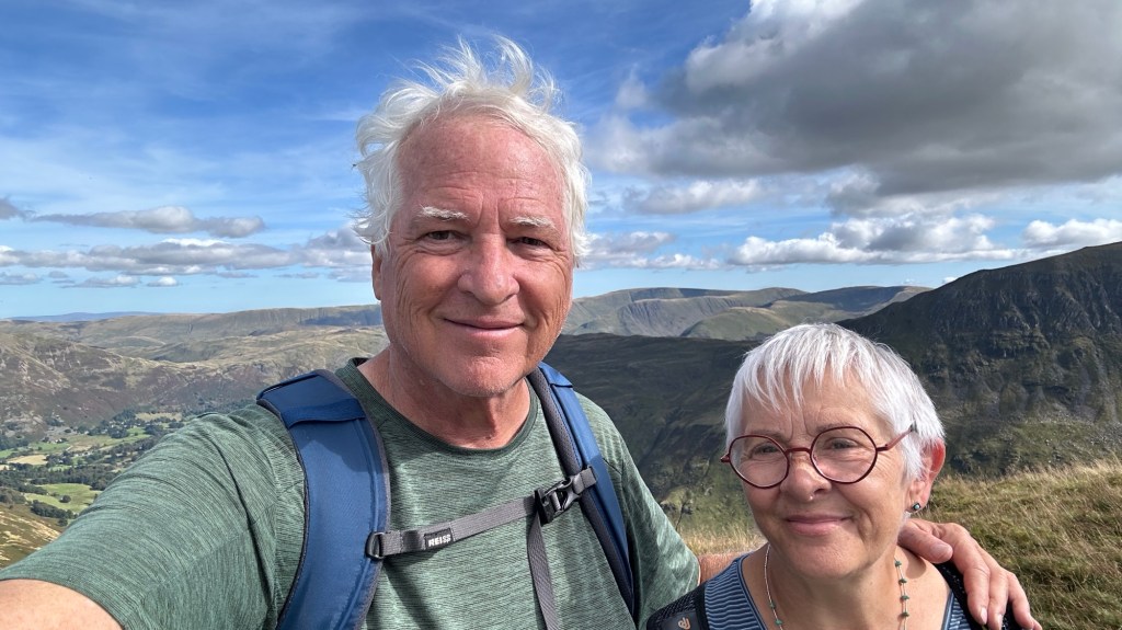 We made an attempt at Helvellyn on Monday. We weren’t quite up to it, but almost; we did 2,500 feet of up and 8 miles. The last part of the approach to the summit ridge is called Striding Edge, a narrow jumble of pointed boulders. It’s the second highest peak in England, and now we are camped at the base of The highest peak, at 3,200 feet, Scafell. We are still tired from Monday, so we aren’t trying it.