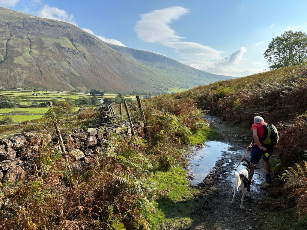 In September I was sitting on the side of a mountain in the Lake District of northwest England, resting on the side of the trail. Behind me was Scafell Pike, England’s highest mountain, topping at 3,209 feet. The weather was ideal for a hike: 65 degrees, puffy white clouds in a deep blue sky, only a very gentle breeze from the south. We were a half mile from the village of Wasdale, which lies just north of Wast Water, one of those famous deep mountain lakes. The campground was full, even though it was mid-September, and the crush of summer tourists was over. Most were climbers, headed to claim Scafell. The dale, or valley, below us was a tic-tac-toe of sheep folds made of tall dry-stacked rock walls. The town itself had only a parking lot for the trailhead, a pub, a small hotel, and a farm. Looking toward the lake we could see a steady line of cars arriving on the narrow road which snaked along the edge of the deep mountain lake called Wast Water.