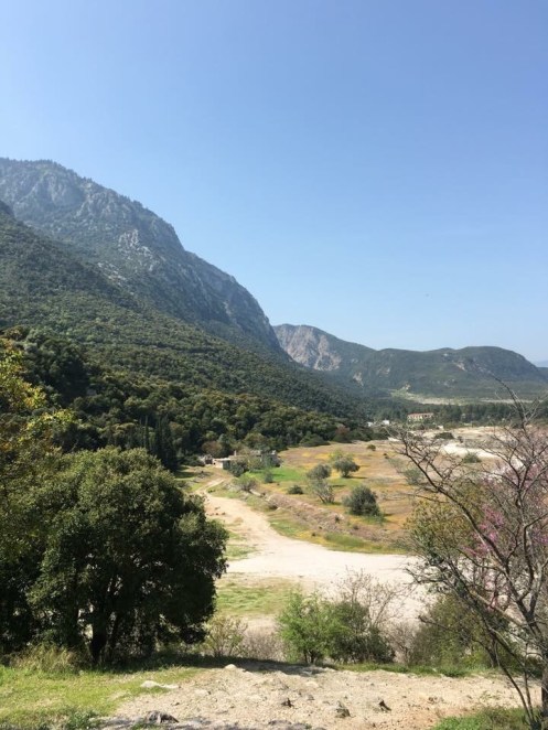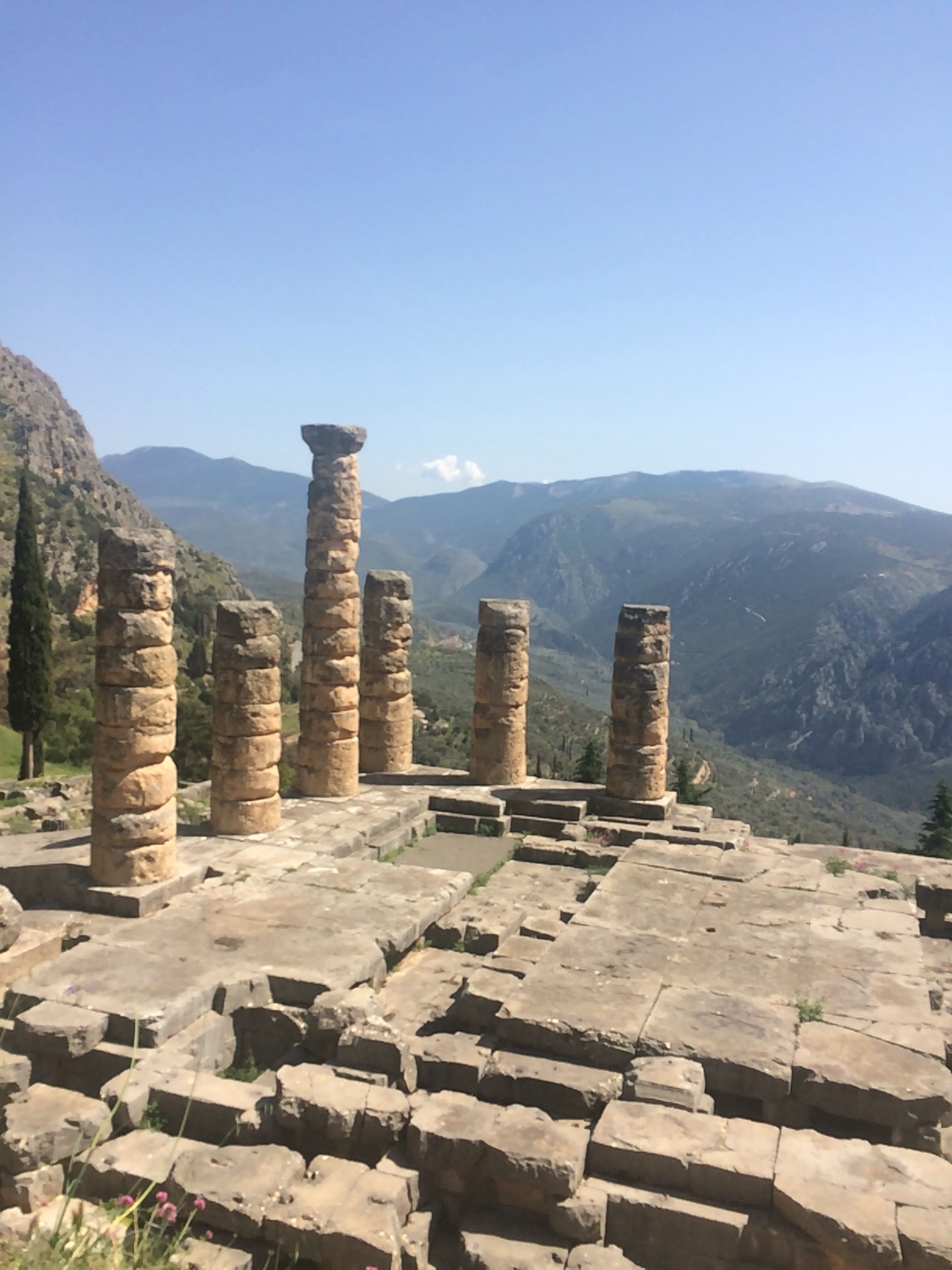 When I visited Delphi 50 years ago my parents were wandering around and I was feeling badly- I was hot with a fever. I lay down between the columns in the photo with my face against the stone floor to cool off. Eventually my parents reappeared; this was before parents never let their kids out of sight.
