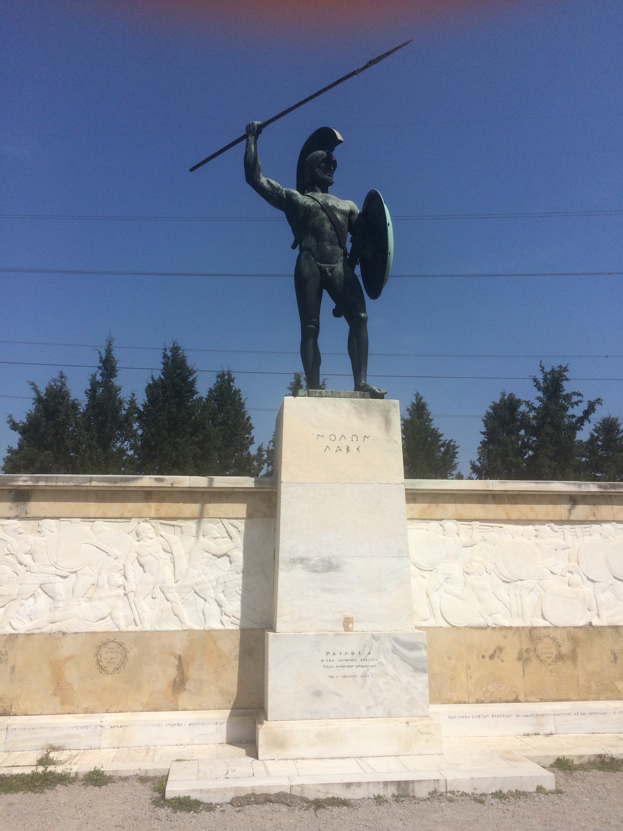 We also were able to visit the site of the death of Leonidas and the Spartan 300. Outnumbered by the Persians at least 100 to 1, if not 1,000 to one (estimates vary widely) King Xerxes suggested that the Greeks lay down their weapons. King Leonidas response?