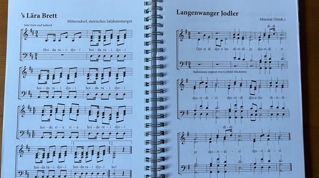 I stood next to Gerhardt, who sang bass, and followed his lead. On the fourth rendition of one piece I finally got it right, and was complimented by Gerhardt and the director (who also created the songbook).