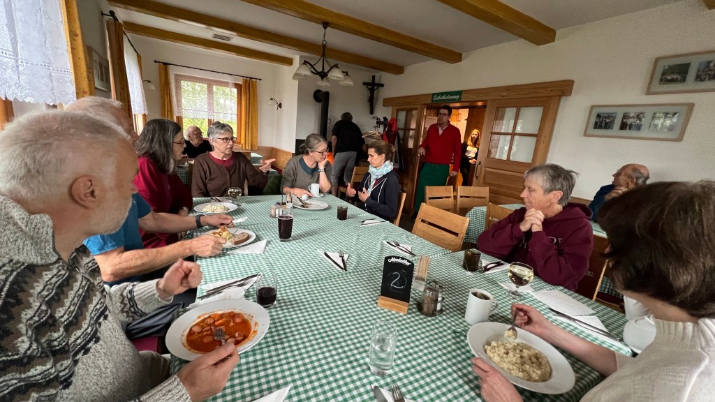 We climbed to the top of a mountain and had lunch in a cozy mountain hut. It is run by volunteers, and the food was fabulous!