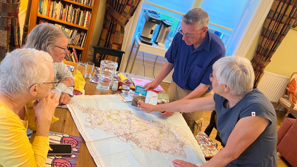 I returned for this year’s Triskelion Pilgrimage. There are about a dozen of us, some I know from last year, but a wonderful group of people. Josette is with me, and my sister Adele. Isle of Man is a small paradise.
