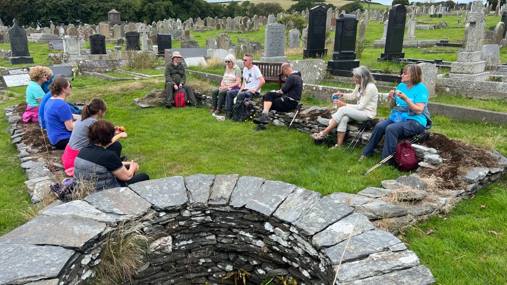 I am walking the guided Triskelion Pilgrimage on the Isle of Man. The isle is between Ireland, Scotland, and England. They are connected to the United Kingdom but a separate country. It’s 34 miles long and they speak English, but also Manx.