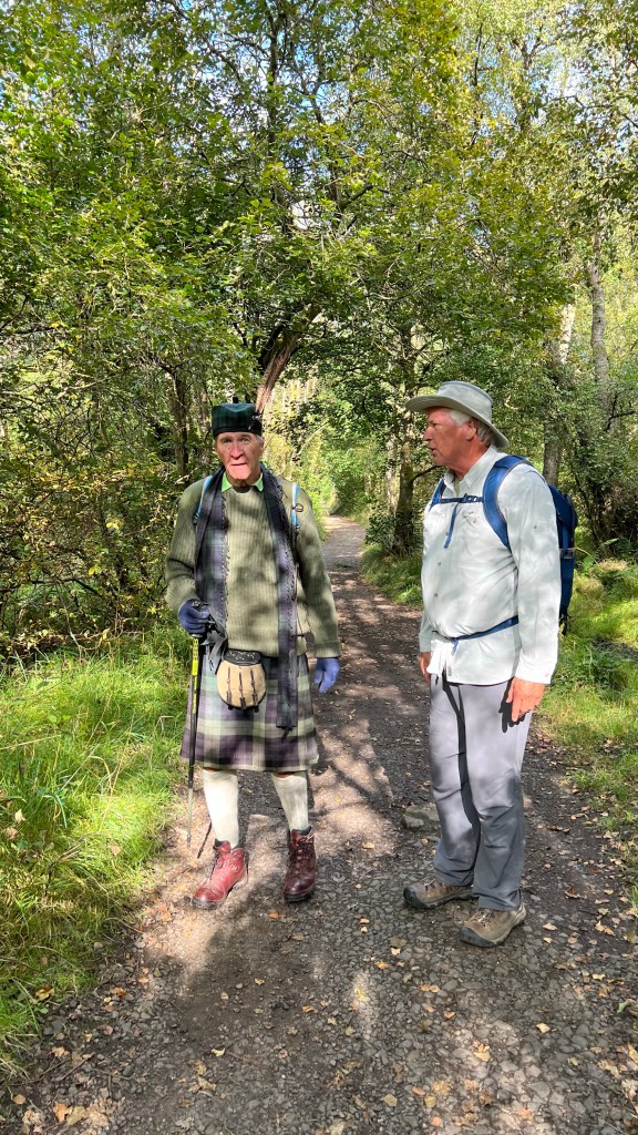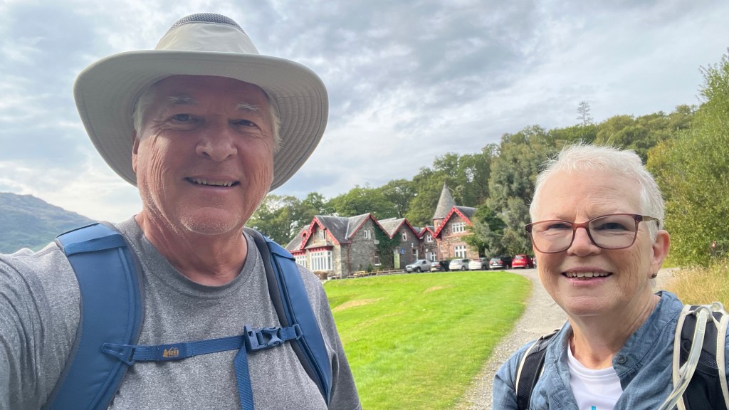 The trail today totals 15 miles and includes a mountain, Conic Hill, so we are taking a bus to Balmaha and skipping the mountain. The total would be too much for Adele on her first day. We walked along the banks of Loch Lohman for 9 miles today.