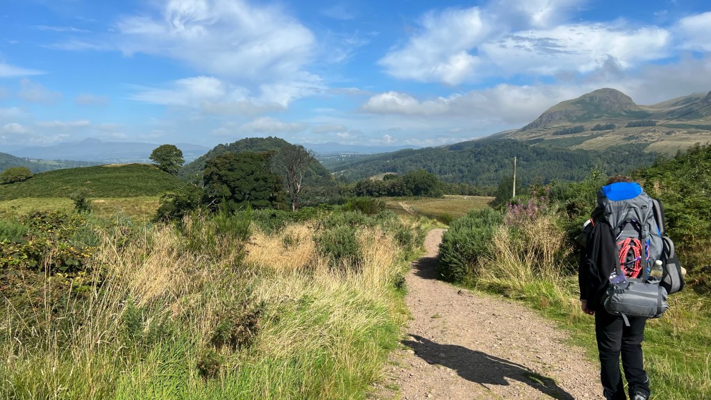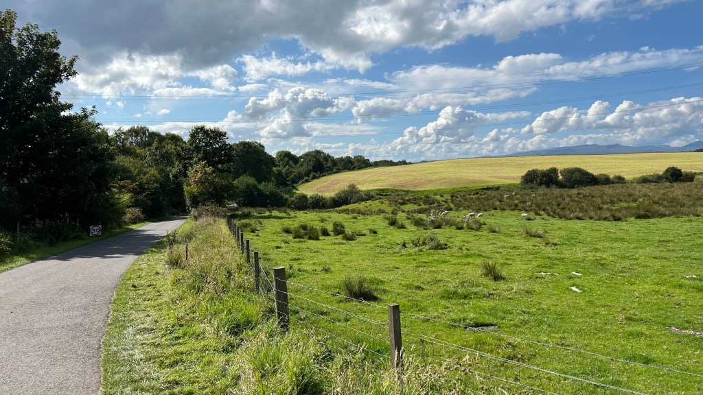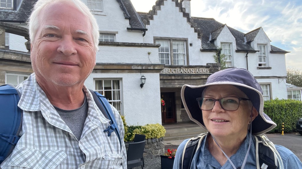 I started walking this trail on September 1st in a quaint village on the north side of Glasgow. My sister Adele is along, although she didn’t walk yesterday. Her luggage didn’t arrive until late in the day, so she came to the hotel at the end point by taxi.